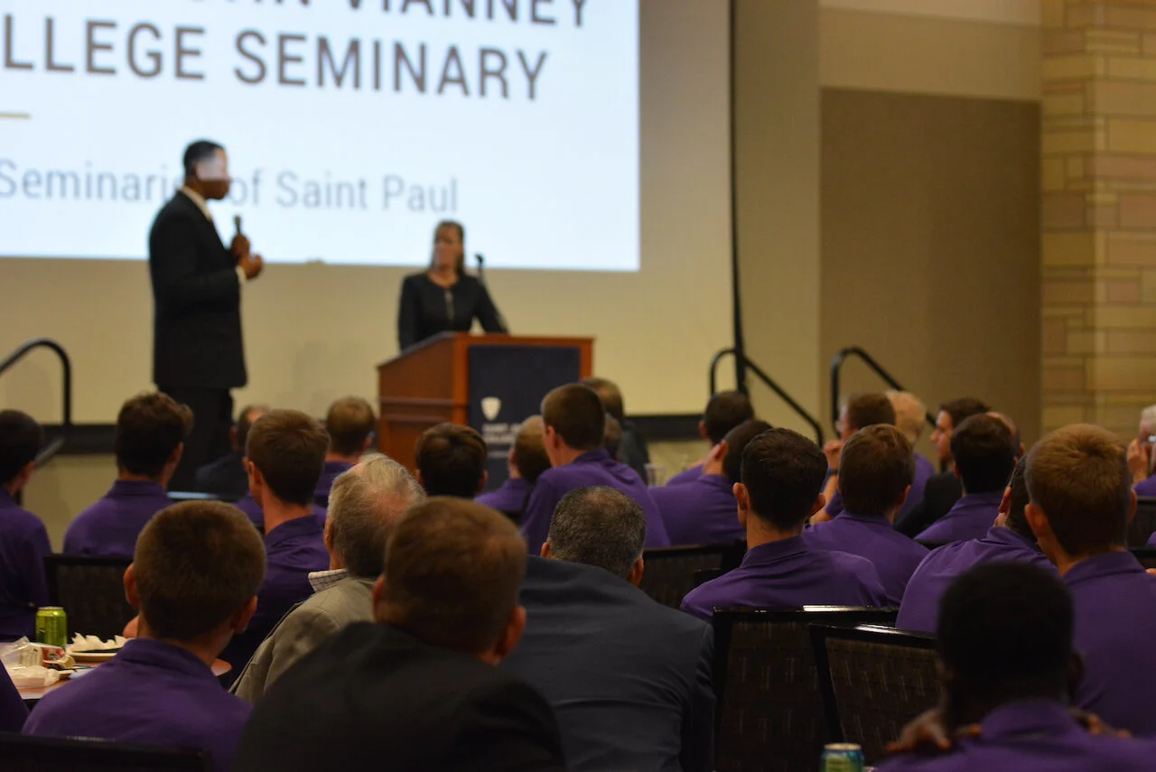 In September 2019, Greg and Julie Alexander, founders of the Alexander House apostolate, visited the campus of UST to speak to the SJV Virtuous Business Leaders groups, as well as the priests and seminarians of the House. They talked about the importance of the vocation of married couples in the Church and the graces Christ bestows on them in the Sacrament of Holy Matrimony.
